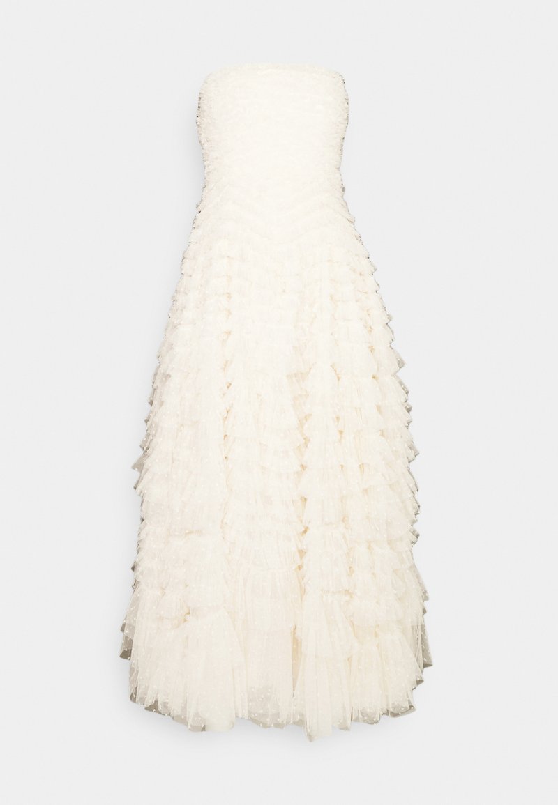 18+ White Strapless Ruffle Dress